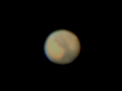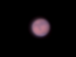 | Quelques images de Mars lors de l'opposition de fin 2005. Mauvaises conditions lors de la prise de vue. Il y a bien une phase comme pour la lune, la planète n'est pas ronde. | |