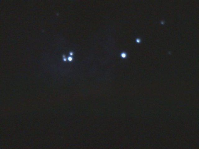 | Retouche (luminosité, contraste). On devine les contours bleutés de la Grande Nébuleuse d'Orion M42. Le LPI n'est clairement pas prévu pour (d'ailleurs,