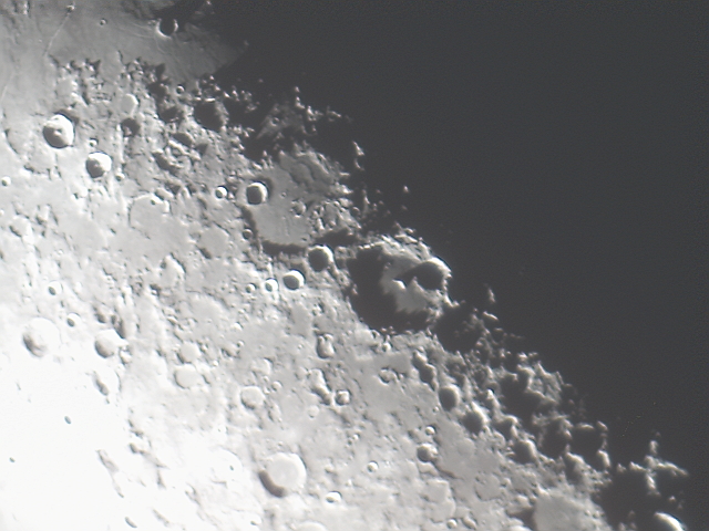 | Lune, zone du terminateur. On voit au passage la taille complète du capteur (640x480). | |