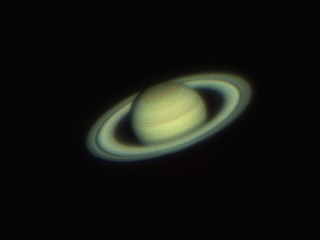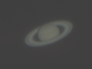 | Image brute, Saturne, lentille de Barlow. | La même retouchée (luminosité contraste) |